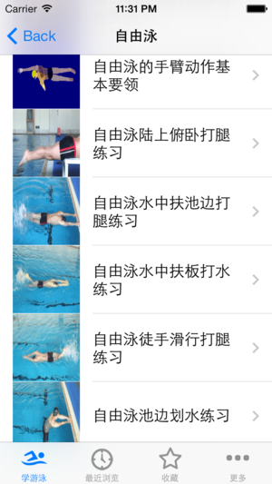学游泳技术训练大全涵盖全部游泳学习内容,包括基础练习(熟悉水性、呼吸训练、漂浮训练、滑行训练、踩水训练等)、学蛙泳分解训练 、学仰泳分解训练、学自由泳分解训练 、学蝶泳 分解训练、实战技巧(学出发、学转身) 以及现代科学训练的方法,重点突出科学性、实用性和可操作性。 不仅适合于想学游泳的入门的朋友,也适合于想从中级跃入高级的游泳选手有很好的参考,而且可以说是马上就可以活活用的内容。 《学游泳技术训练大全》特点: 1 动作要领动画演示; 2 分解训练动画演示; 3 全文内容自动朗读功能; 4 学游泳视频 5 简明介绍以科学理论为基础的最新训练方法。 6 离线使用,不用上网也可以使用,速度…