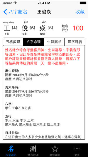 支持简体与繁体字库切换,精准专业的生辰八字测算,完整的喜用神分析及笔画筛选。帮助您快速找到自己满意的好名字。 同时综合了姓名学中的三才五格数理分析,生肖属相喜忌分析,满足您对于姓名各方面的要求。