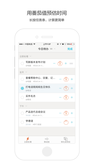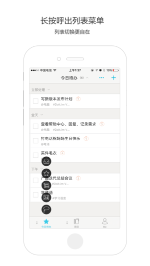 Doit.im是遵循GTD理论的任务管理工具,以最聪明的方式管理你的日程以及待办事项。无论你是忙碌的管理人员,还是聪明的员工,Doit.im都可以帮助你高效处理任务,让你从容享受生活。 Doit.im根据iOS7重新设计全部界面,使操作更简便;全新的今日待办和下一步行动列表,让任务更聚焦。 功能: 1. Doit.im将任务同步到云端,让你随时随地掌控自己的任务 2. 完整遵循GTD理论 3. 支持目标、项目、任务、子任务多个层级 4. 支持目标、项目、任务、子任务、情境的手动排序 5. 编辑界面和查看详细界面融合,可在查看页直接编辑 6. 支持向你的同伴转发任务,并可以跟踪任务的完成 7…