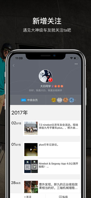 Segway-Ninebot-智能平衡车的专属管家 Segway-Ninebot为Ninebot & Segway平衡车车友提供以下服务 【车辆服务】 车辆连接:准确获取车辆信息和行驶数据 车辆激活:一键激活,随时观看驾驶指南以及新手教学 车辆设置:灯光、速度、灵敏度…你的平衡车你做主 【车友互动】 N粉圈:上传视频,高超技巧视频来秀 车友互粉:关注九哥九妹,更多惊喜活动根本停不下来 排行榜:增加日榜,与全世界车友PK,老司机们准备好了吗 九号社区:社区可以通过手机浏览啦~ 附近车友:约上附近的车友一起刷街吧 【更多精彩】 多种方式获得N币,悄悄告诉你坚持刷街会送很…