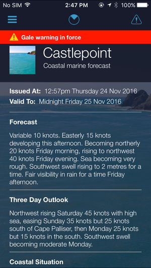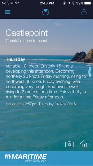MetService New Zealand marine forecasts are now available in a handy smartphone app. The app is free of charge. Features include: - Recreational and Coastal marine forecasts - Severe weather information - Tides - 7.5 minute Rain Radar - 3 day rainfall forecast imagery with wind barbs - Surface pres…
