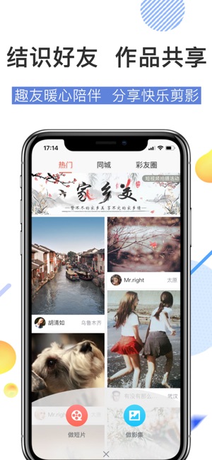 彩视是一款简单好用的视频剪辑编辑,电子音乐相册创作软件。功能强大,零基础也能轻松制作专属视频。海量的精美素材,超多的特效模板可供使用!导入照片视频,即可一键生成作品,下载转发方便快捷!更有彩友互相交流创作、交流生活,快加入我们吧! ***主打功能*** 【超多炫酷模板】 3D炫酷模板抢先用,各种场景模板每周更新 【海量精美素材】 内置海量精美素材库,作品素材不用愁 【高级制作功能】 图片、视频、音乐剪辑,特效滤镜,艺术文字,个性转场,精美字幕,作品与众不同,佳作脱颖而出 【热门推荐视频】 精彩作品上热门,每人都能做明星 【视频作品分享】 微信、朋友圈、QQ、Q…