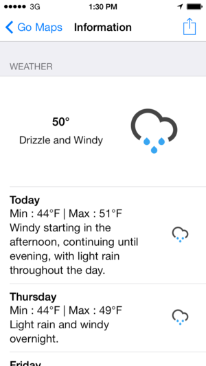 Go Maps brings Google Maps, Directions, Street View and Weather back to your iOS 7 devices. Featuring boosted performance, quick load times and fast automatic caching for previously viewed areas. Go Maps is the first Mapping Client to include a 7 day weather forecast for any location just by a Sea…