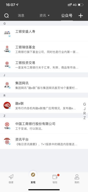 “工银融e联”,工行全新打造的移动金融服务平台,您的贴心财富顾问。 贴身相伴。与专属客户经理零距离接触,专业服务号为您提供精准周到的金融服务。 理财有道。通过财富顾问建立的群组,聊金融、谈投资,寻找志同道合的朋友。 一指搞定。享受金融交易、网上购物、金融资讯等一站式生活服务体验。 全程无忧。实名认证、手势密码、消息加密,体验银行级的安全保障。 我们看到很多App Store的评论都是很中肯的意见,但是我们无法联系您。如果您遇到问题后,请通过“客户服务”服务号将问题发给我们,并注明“问题反馈”字样,我们会及时收到并回复您的疑问。感谢您让我们成长,我们一直在您身边。 更多惊喜,等您…