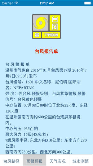 "温州台风网"是温州气象局台风网手机服务客户端,以发布西太平洋的台风信息为主,为用户提供实时的台风动态信息、历史台风、卫星云图、雷达图等数据。