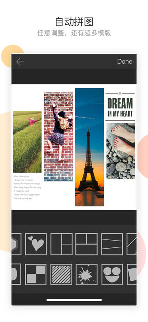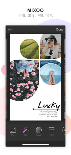 精细化单张照片编辑,智能化可调节拼图模板,个性化独家精选杂志模板,更有美颜相机助阵,一站式解决你所有的修图烦恼! *多样化拼图模板 Mixoo立足于拼图模板的专业性,提供百种不同风格的拼图模板满足所需的不同场景。 *强大单图编辑器 对照片的色彩、尺寸、亮度、色调进行精细化调整,加上百种滤镜、几十种字体、文字效果供你选择,让照片更专业有质感。 *美颜相机 配有百种实时滤镜的美颜相机,让照片即拍即用。 *独家个性杂志模板 时尚杂志模板紧跟潮流,love、baby、business、trending等多系列模板,满足不同情景需求,轻松让照片变得高大上,不间断更新的样式让你每天都有新图分享,再…