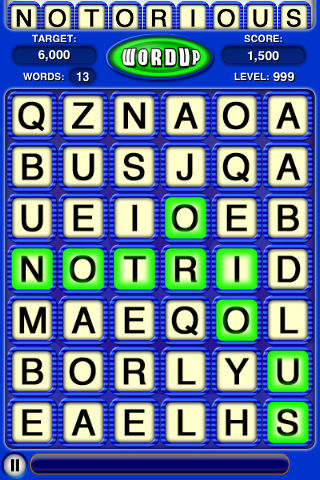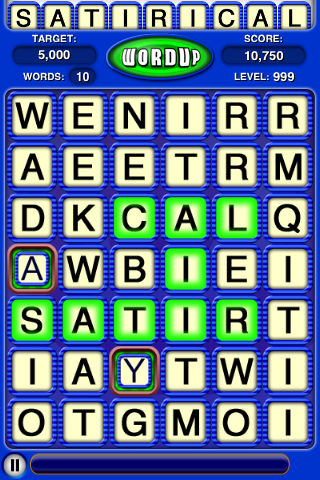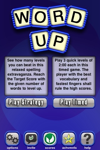 Word Up is new and improved! At last, a major upgrade for Word Up is here! Leaderboards, Achievements and other cool features are now ready for play. Come play the word game that REACTS to what you spell! PLAYER REVIEWS: Great word game for those who love word games like I do. I especially like the thoughtfulness to include specific sound effects for specific types of words. Easy to learn and hard to stop playing. - Jeff M. I was completely addicted to WordUp on my PC -- great job with the iPhone version!! If you love word games, get this one -- you will not be able to stop playing it. Oh, and the graphics are great!!! - Martpie Could be addicting but the crashes make it frustrating...that and my wife has 10000 points more than me! - FBU ( Skunk Studios: sorry about the crashes in the old version! We've upgraded it majorly - the new version should crash much less! ) DESCRIPTION: Create words by connecting the letters in the grid then hit the Word Up button to bank it. New letters will drop in to refill the board. For extra strategy, rotate your iPhone to change which direction the tiles drop! Two game modes allow for fast and frantic, or calm and cerebral. Sassy sound effects and achievements keep the gameplay fresh and fun. FEATURES – Select tiles to spell any word up to 9 letters long. – Rotate your device to change the direction in which the tiles drop. – Click and drag spelling or click one tile at a time. – Strategy Mode: Reach the target score before your allotted word count runs out. – Timed Mode: Play 3 rapid fire two minute rounds to score as many points as you can. – Amazingly integrated audio effects: Spell a racy word and hear what happens. – Dynamic save feature lets you exit at any point to continue playing later. – Play against your friends with Leaderboards powered by OpenFeint (NEW!) – Earn trophies for spelling skills with Achievements powered by OpenFeint (NEW!)