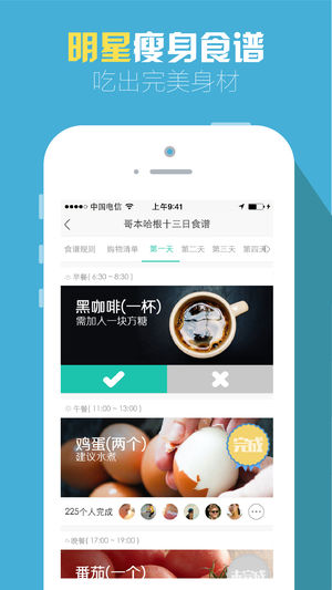 「哥本哈根减肥瘦身」 - 我的移动轻体专家 哥本哈根APP推出的快速瘦身计划「哥本哈根13天减肥法」推出后已经成为全世界最流行、最知名的快速瘦身食谱计划。 减肥瘦身中经常遇到的问题: - 不知道使用什么方法让自己的体重快速下降 - 去健身房坚持锻炼,跑步,可因为没有制定饮食或辅助计划而功亏一篑 - 没有合适的记录工具 - 网上成功案例太多太杂,不知道哪个靠谱,对自己有帮助 「哥本哈根减肥瘦身」的解决方式: - 为用户制定详细、定时定量的减肥食谱,帮助用户轻松达到快速瘦身目的 - 针对快速瘦身、保持身材、局部美化推出丰富的计划帮助用户进一步达到健美身材的目的 - 记录工具的体验专为现代人优…
