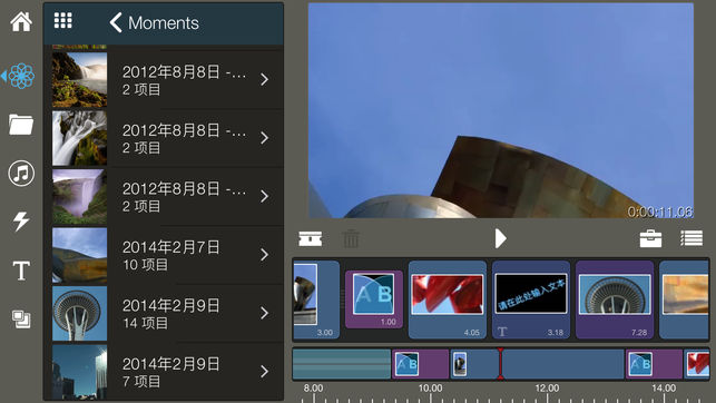 * 最好的移动应用程序,年度Videomaker最佳产品 - 2014年 * 《时代周刊》评选出的 50 款必备 iPad 应用之一 - 2013 年 4 月 * PCmag.com 编辑推荐奖 4/5 颗星 - 2012年4月 * 148apps.com - 4.5,满分5星! 对于谁想要得到真正的,富有创意的短片制定权在他们的iPhone和iPad的人! 非常适用于移动记者和电影制作人的创意。编辑视频,音频和照片在你的创造力的速度。迅速安排剪辑在情节提要,不放弃的精度和全时间轴的控制权。添加转场,速度和蒙太奇效果。创建和自定义标题,并建立配乐为影片。享受1080p输出,并直接分享您的影片…