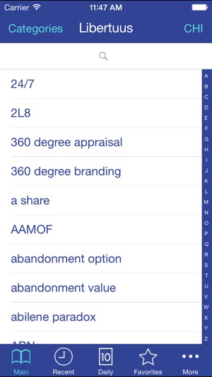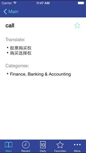 词典共有6000个条目,尤其是专业人士的必备参考。词典覆盖的所有业务术语包括8类: •财务、金融和会计; •经济学; •统计; •运营; •电子商务; •市场营销; •人力资源; •管理。 iPhone和iPad版本应用程序的特殊功能包括: •8个专门类别; •每日一词,推出新词方便掌握; •常用热门单词有特殊标记; •最近浏览条目有自动历史记录; •高级文本搜索; •轻松导航,语言快速切换; •无需互联网连接。 Libertuus从的商务语言日新月异的方方面面提供有根有据的术语选择。