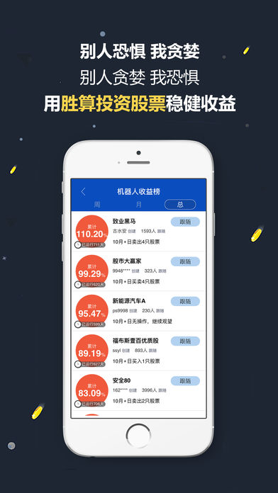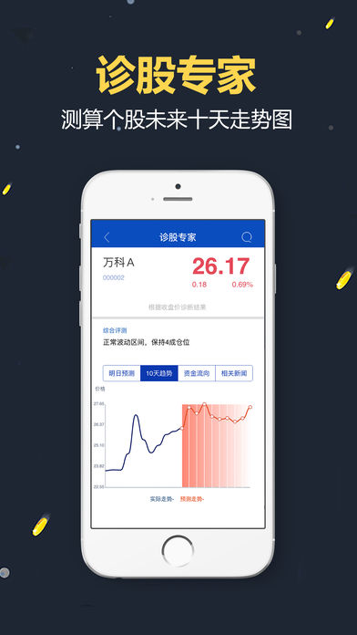 【产品简介】 胜算在握智能投顾,是国内领先的量化机器人炒股软件,超过百万用户使用和体验,是各大应用市场上受股民欢迎的机器人操盘(金融/投资/理财/证券)软件。输入资金自选股,提前一天提示买卖操作,为普通投资者提供个性化、开放、持续的一站式智能投顾服务。支持多家券商在线开户交易。 【产品特点】 机器人投顾:机器人操盘,当晚告知下一交易日的操作计划; 解套专家:仓位控制+低买高卖的完美结合,科学解套; 每日黑马:智能机器人投资模型筛选出上涨概率大的黑马股; 诊股专家:智能测评工具,仓位提示,预测10天走势图; 跟随炒股,波段获利,主题累计收益超100% 由祥云信息(国家高新技术企业,深圳市高新技术企业)研发出品的一款量化炒股软件,软著登字第0400684号--胜算在握,独创'阿尔法技术分析策略+云计算技术+金融工程”相结合,准确提示买卖操作,智能分析,颠覆了依赖消息面定性投资的传统模式,为广大投资者提供可信赖的智能化金融服务,是您贴心的理财智能管家。 【获得荣誉】 获优质体验移动互联网金融奖。 【友情提醒】 邀请好友注册,可以获得更多云豆和服务哦! 【联系我们】 官方网站:win9008.com 联系电话:400-9008-77