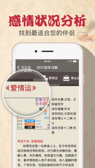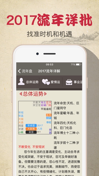 全球华人地区最受使用者欢迎的命理分析! 最新最全面的2017鸡年运势预测分析! 香港易学大师何汉明老师数十年真人论命经验总结,给您准确的命理分析! 多次接受《苹果日报》及台湾、马来西亚、新加坡多家报纸媒体、杂志及网站访问! 【香港易学大师何汉明】 何汉明老师出生于香港,毕业于香港理工大学,是当代著名易学大师,在紫微斗数的造诣上更是登峰造极。何老师与香港的紫微杨、中州派的王亭之、台湾的紫云大师、慧心斋主一道,共同推动了紫微斗数在香港乃至整个大中华地区的传承和发展。 自2002年开始至今,何老师为传播和弘扬中国国学身体力行,一直受邀于香港理工大学、香港大学开办专业课程,讲授道教文化、易学术数、堪舆风水,以易学、易掌握、易普及的方法教授,受益者广泛 ,多年来更於国内外,参与各类易学讲演、学术研讨等。其独家观点演讲的“道尽生死”“紫微斗数”等主题讲座更是多次在香港及国内多个机构演讲,为现场数千名观众尽解心中疑惑。学员3万有余,听众近50余万人次。何老师亲自编写的易学教材17 种、13 册,300万余字。其中,何老师的紫微斗数巨著《紫微斗数悬星引路》,从先天卦与紫微斗数盘式的关系以及化禄和纳甲法的关系,论述了双星同宫的复杂变化和意象,深入浅出,让年轻人能在系统科学的环境下学习中国易学的精髓,出版后广受欢迎,多次加印。 何老师致力宏扬中国国学文化,并為中国术数能够国际化付出了巨大的心血,频繁出席各类各地电台、电视台节目等风水命理活动,并多次接受《苹果日报》及台湾、马来西亚、新加坡多家报纸媒体、杂志及网站访问。广结各地善缘,一时之间,各处来鸿,有来自中国大陆、台湾、美加、印尼、星马等地的中国国学爱好者及业界朋友,均希望与何老师结缘,推广紫微斗数及中国文化。 【值得信赖的机灵】 「灵机」,凭其「命理测算APPS」打入市场,短短三年间总下载用户超过35,000,000人,日均软体流览量达到500万,用户覆盖48个国家及华人地区,成為全大中华区最大型的「命理测算APPS」,绝对攒足眼球! 更让人惊叹的是香港风水天后麦玲玲、香港风水命理人气王李丞责、香港著名玄学家陈定邦、香港大学进修学院玄学家何汉明、中国岭南地区著名风水命理大师何树荣、台湾面相改运第一人罗镇等众多命理界一级大师均表明对灵机的认可和支持! 同时灵机还获得眾多明星的支持:TVB《东张西望》主播李漫芬小姐、香港著名演员陈煒小姐、台湾青春偶像棒棒堂、香港著名主持人庄思敏小姐、香港《怪谈》栏目著名主持人梁思浩等明星纷纷表示支持灵机! 【灵机携手何汉明,打造正确算命论命应用】 何老师以自身数十年的真人论命经验,融合了道家的思想,和天地阴阳及五行的概念钻研命理学术,创出有别于先贤的紫微斗数排盘方法,提升论命准确率,助人正确了解自身命运,得到多国人士认同,许多外国人士慕名而来,请何老师分析命理情况。何老师发现很多人不懂命理,分不清楚自身运势变化情况,不了解各个人生阶段需要做什麼,这往往导致付出了努力却得不到相应的回报。只有掌握自身命理资讯,才能更好规划人生。 【应用内容揭秘】 2017流年运势详批,分析财运起伏、感情婚姻、升职跳槽等运势情况,预知明年机遇。 婚姻感情分析,了解您的婚姻生活状况,找出适合于您的婚姻物件,了解伴侣出轨的几率。 财运状况分析,预测您财运好坏、富有程度,金钱的支配使用情况,以及赚钱的能力与机会。 健康注意分析,了解自身的健康状况,身体的弱点,提早做好疾病预防工作。 事业发展分析,看出您是否适合创业,与上司相处的互动情况等资讯,提供适合的职业定位。 【联系我们】 网站:http://m.linghit.com/ Facebook: https://www.facebook.com/linghit