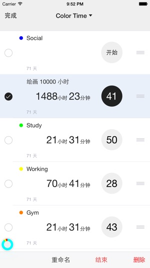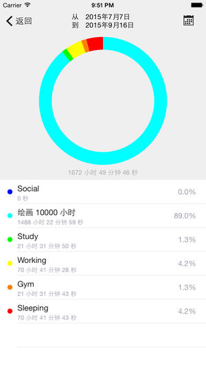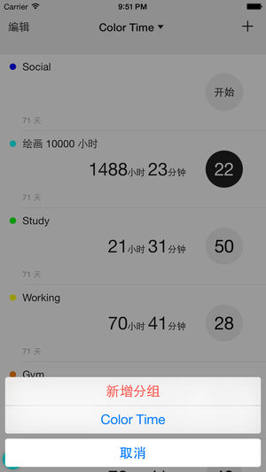一个简单的时间管理工具 ● 使用场景一:这段时间有几个项目在同时进行,好想知道在这些项目上花了多少时间以及这些时间又是如何分配的。 ● 使用场景二:最近在练习画画,看看每天都花了多少时间在练习。 "工作, 睡觉,运动,健身,看电影,听歌,阅读,社交..." 如果你真的想知道你在这些事情上花了多少时间,这些时间又是如何分配的。请使用“Color Time”工具吧,它将会是你最佳的选择。 作家格拉德威尔在《异类》一书中指出:“人们眼中的天才之所以卓越非凡,并非天资超人一等,而是付出了持续不断的努力。1万小时的锤炼是任何人从平凡变成超凡的必要条件。” 他将此称为“一万小时定律”。要成为某个领域的…