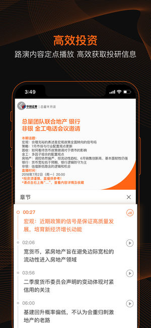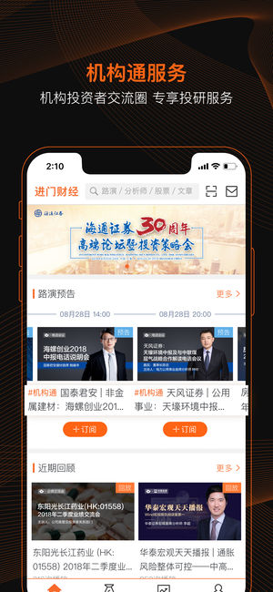 进门财经(股票代码:838764),领先的机构投研服务平台,平台以专业的投研分析为核心,基于首席分析师大量深度研究、上市公司调研、行业专家产业解读,聚合、精炼高质量高价值的研究成果,助力投资者投资决策。截至目前,已与海通、招商、长江、广发等35家券商研究所建立深度战略合作关系,全行业500多位首席分析师在进门财经APP线上路演最新研究成果。 平台内容 分析师:与500多位券商分析师线上互动 投研资讯:提供深度投研精华盘前盘后策略解读 上市公司:业绩发布会,约调研,重大事项说明会等 财经观点:行业专家产业解读、投资大咖线上分享 金融课堂:高品质投研培训,为投资者进阶赋能 产品功能 直播形式:…