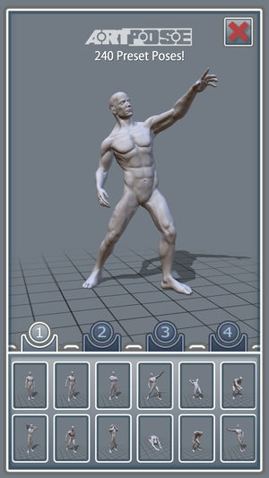 ArtPose is a fun and artistic app for posing the male figure. Create fast and dynamic poses in minutes. Quickly flesh out an ideal pose, then take a screen shot to use in your favorite art apps. 240 preset starter poses make getting started a snap. ArtPose is about keeping you in the moment of cr…