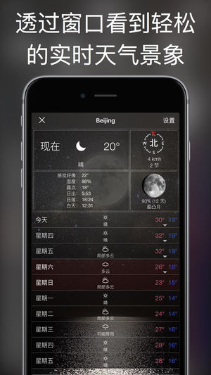 10日天气应用程序让您未雨绸缪。预先筹划下个周末的派对、运动赛、出行等。 精美的高清天气图像与您的办公桌、床头柜或客厅架相得益彰。 我们有多种多样的高清动画,随所在地天气状况、你的心情而变,或显示随机景象。美丽的海景、宁静的雨景、迷雾、神奇的雷雨云……风云变幻在您的屏幕上栩栩如生。 天气功能: '+ 点击一下即可获得详细的10日天气预报 '+ 3天内的每小时预报 '+ 光滑的屏幕以逼真的动画天气背景显示当前的天气状况 '+ 滑动屏幕来选择城市 '+ 支持英制单位和公制单位(Fº/英里每小时或Cº/千米每小时) '+ 自动定位或通过简单搜索添加所需的地点 其他功能: '+ 与当前天…