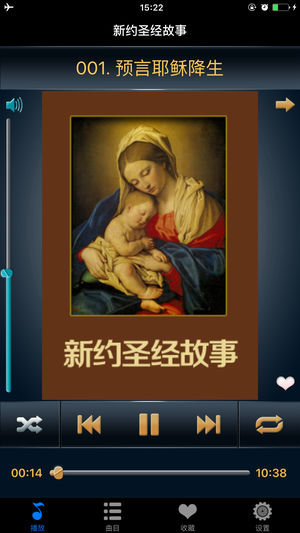 《圣经》不仅是一部宗教经典,也是整个西方文明的基石,深深影响着西方的政治体制、文学创作乃至风俗习惯,对西方文化及人类文化都有着重大的贡献。该APP选取了《新约圣经》里面流传最广、影响最大的、最具代表性的精华部分,通过优美的语言,以浅显的故事形式通俗易懂地叙述出来。