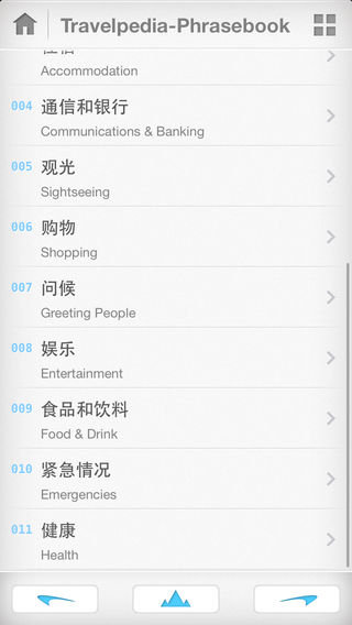 掌握英语,畅游美国、英国、澳大利亚、加拿大等英语国家,支持通过英语、中文、粤语、日语、韩语、法语、德语、意大利语、西班牙语、希腊语、泰语、越南语、捷克语查看、翻译、发声朗读、学习英语。让你尽情走遍美国、英国、澳大利亚、加拿大等英语国家! ** 涵盖了国外旅行必需的11种对话大类(数字时间天气、交通、住宿、通信银行、观光购物、问候、娱乐、餐饮、紧急情况、健康等)。每个大类更有明细分类,包罗旅行细节万象。 ** 所有旅行对话配有男女真人朗读音频,可以轻松使用我们的App在旅行时“代言”。同时配有文字,也可以在旅行遇到语言不通时show给对方看。 ** Parkour Lab是中国最为专业的旅行App制作工作室之一,目前现发布了超过200款专业收费旅行App,常年位列畅销排行榜与付费App排行榜前列。我们了解中国旅行者们的需求,我们希望为中国的旅行者们带来更多的方便,我们希望更多的中国旅行者们走遍世界。