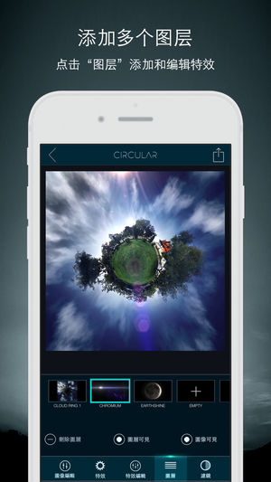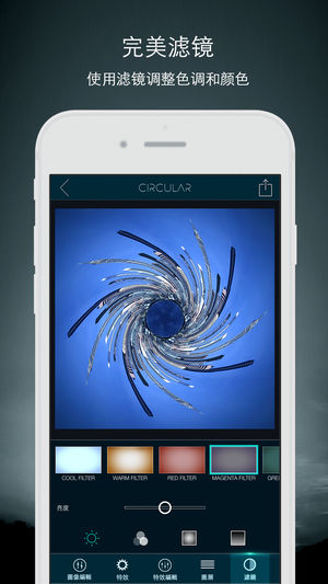 Circular可将你的照片变成精美的圆形特效图像,有趣好玩,拥有强大的新功能,是一款你前所未见的新品应用。可轻松缩放圆形图像直至完美,在满意后,可给图像添加专业特效,如镜头光晕和天体(太阳、月亮、星球、鸟儿等等)。 另一个很酷的功能是拥有一系列"中心源"物体,包括球体、星球、几何形状,可放在图像圆的中心,将图像变成一个迷你世界。 特点 - 超快编辑响应 - 可调整图像缩放、旋转、反转模式及重复 - 专业特效: 镜头光晕、天体及中心源特效。 - 滤镜 - 趣味示例图片助你入门 使用#CircularApp给你照片加标签有被加精机会。