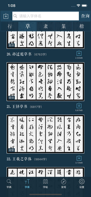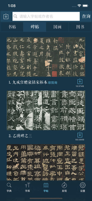 • 可查询行、草、隶、篆、楷五种书法字体; • 支持多字查询,方便集字创作; • 100多万张书法字形图片,并有字帖真迹单字图片; • 篆刻印谱查询,汇集三堂印谱、西泠八家等名作; • 书法名家字体库,配合诗词曲生成书法字帖; • 经典书法字帖,高清大图,字迹清晰; • 历代著名碑帖拓本; • 精选高清国画,每幅画均有大量名家题字; • 各种经典书法理论及教程; • 可进行字帖临摹,附田字格供研究字体间架结构; • 书法创作功能,书写后可与照片合成; • 个人手写字拍照后可生成ttf格式字体; • 个性签名及印章生成; • 精选唐诗、宋词、元曲近千首,配有详细的解说。