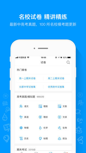 一款初中生高中生喜爱的提分利器,提供全国初中高中名校考试题历年考试真题,中考高考必备的学习软件!小猿搜题、猿辅导兄弟产品。 【学生党好评如潮】 1. @Barry(冯):非常棒的刷题软件! 2. @余角45度:高考党头一次,做题感到一种爽! 3.@Su:很厉害的一款软件呢,我妈看见我用小猿都不阻止我用手机了[赞] 4.@蠢蛇:说真的,初三的时候就是用这个软件直接从无望读高中刷上了高中,效果不用解释了吧。 5.@14年中大新生:题目全,初中高中高考的题目都有~界面美,答题方便!这么好的应用不推荐心难安啊。 【猿题库优势特色】 1、全面覆盖各科考点:题库覆盖数学、英语、语文、物理、化学、生物、…