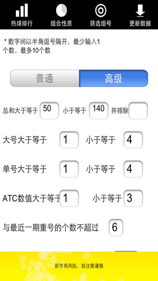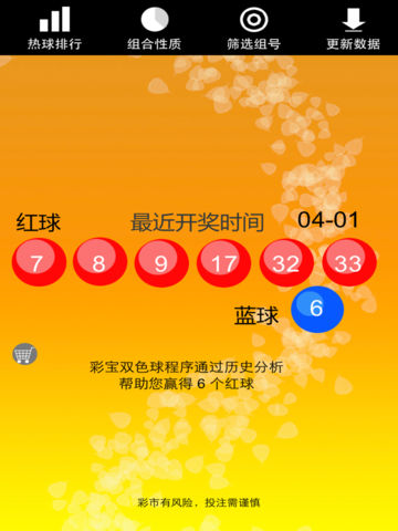 彩民来信:彩宝双色球让我得到6红球全中的二等奖,奖金96000元,谢谢!----江苏彩民 ========================== 彩宝双色球通过统计分析帮助你极大提升选中6个红球的机会! 虽然命中6个红球和1个蓝球可得特奖,但难度太大。相比要命中6个红球会容易得多,同时还有中蓝球的机会,奖金也是非常丰厚的。 我们专门研究红球的走势,组合组号工具,为您赢取6个红球的机会。 和别的软件不同的是,我们把6个红球按每期从小到大独立进行了分析,分别命名为红1-红6。理论上,红1最小取值为1,最大取值为33-6=27,实际上红1很少超过15,红6也是如此。 因此,你可以按各期的走势为每个红球定义一个大致的范围。比如红1在下期可能是05,07,08,09,10,红2至红6也依次定义。 然后软件进行组合,它会把重复的数字过滤,并根据你的高级选项进行缩水操作,就得到了理想的投注组合。 根据这些注合自己再找定一个蓝球进行配对,当然这个蓝球就完全靠运气了。如果6个红球全对,同时你又蒙对蓝球,那么你就是幸运儿了。 根据我们的测试,以小博大,中4-5个红球的机会较高,要真的全中6个投入会较大,同时还是要选得准。总之,我们极大地提高了您的中奖机会,为你提升特等奖的运气。