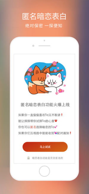 【备受90后喜爱的社交平台】 单身的你,或是想寻找生命中的那个TA,或是想认识有意思合拍的人,无奈工作太忙,生活圈子又太小。在匆忙的城市里,每天都有无数人在擦肩而过,却又没有方法彼此相识。 「探探」是一种全新的相遇方式。以双向的“一见钟情”找到对你Special的人。 简单、心动、惊喜。相遇本该如此美好。 现在,探探又推出全新功能—擦肩而过,通过地理定位,推荐给你恰好和你经过相同地点、“擦肩而过”的人,让社交变得更有趣、更有缘分! 探探的特点: 【简单】左滑无感、右滑喜欢,互相喜欢即配对聊天 【高效】配对后聊天回复率超高 【心动】配对瞬间,带给你一次甜蜜的心动 【自信】说第一句话前,…