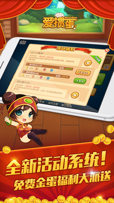 ◈◈◈◈ 扬子晚报、金陵晚报等五星推荐应用 ◈◈◈ 独家原创垂直理牌界面 ◈◈ 独家原创好友系统,实时聊天 ◈ 数百万掼蛋玩家的选择 掼蛋, 起源于江苏淮安,是由地方的扑克牌局跑的快和八十分发展演化而来,目前在江苏、安徽等省市,颇为流行,俗称饭前不掼蛋, 等于没吃饭 ◈ 产品特点 ◈ 1.独家原创垂直理牌界面 比起以往27张牌从大到小挤成一列,爱掼蛋的牌可以自由整理,一眼就能找出所有同花顺和炸弹。 2.丰富的道具系统。 用游戏赚取的金蛋可以购买各种道具装扮角色和牌桌,不再像以往一群吊丝围着铺满广告的桌子出牌了,在爱掼蛋里,玩家是有血有肉的角色,桌子上放着心爱的宝贝。 爱掼蛋专为掼蛋爱好者打造的棋牌游戏! 在南京、苏州、无锡、常州、南通、泰州、扬州、盐城、镇江、盐城、宿迁、淮安、徐州、连云港,在合肥、芜湖、蚌埠、淮南、巢湖、马鞍山、淮北、铜陵、安庆、黄山、滁州、阜阳、宿州、六安、亳州、池州和宣城,以上每一个城市,你都能看到在玩爱掼蛋的人! 我们敢说没有比爱掼蛋操作体验更好的棋牌游戏!