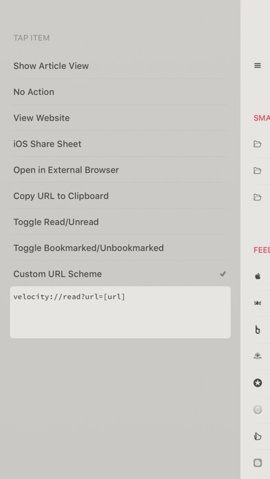 Requires a Feedbin or Feed Wrangler account. --------- Sidetrack has some unique features, such as: • Speed Browsing - handsfree, automatic display of articles every second or two (configurable in the settings) • Jump directly to any point in the list of articles using the scrubber control • Quick access to multiple sharing & saving options with one simple gesture • Supports adding custom URL schemes to common actions • Image filter options, such as Black & White, Poster and Grunge --------- Sidetrack includes standard features such as: • iPhone, iPad and Apple Watch support • 3D Touch support on lists, articles and images • Split-Screen on iPad • Handoff between devices • Sharing to Email, Instapaper, Pinboard, Pocket, Reading List and Twitter • Add, edit and delete RSS feeds • Light and dark mode, with automatic switching based on screen brightness • Themes and font options --------- Feedbin features: • Filter articles by tag • Add, edit and delete saved searches --------- Feed Wrangler features: • Add, edit and delete Smart Streams • Online search --------- Sidetrack is not endorsed by or affiliated with Feedbin or Feed Wrangler