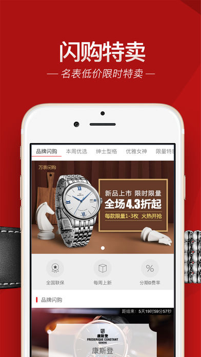 万表-买正品名表免息分期,150万人的选择! 万表,致力为全球名表生态圈创造价值,厚道、专业、大平台、值得信赖信任!银行合作,买手表免息分期。 在万表,有最齐全的全球名表品牌、最fashion的流行爆款、最划算的超低折扣!这里有百达翡丽、江诗丹顿、劳力士、爱宝时、库尔沃、万国、柏高、欧米茄、卡地亚、天梭等100多个国际大牌,也有dw、阿玛尼、卡西欧、精工、弛客、CK等时尚潮牌。汇聚手表时尚热点,最IN的手表品牌资讯、最潮流的手表穿搭、最专业的手表评测......还有来自世界各地的钟表设计师、鉴赏师、腕表名家、大神级名表赏析。 买手表上万表! 万表拥有众多欧洲钟表品牌的官方授权,整站自营,向手表品牌商直接采购,从根源上杜绝假货,保证正品! 万表提供包括在线选表、在线咨询、手表购买、出境购表、钟表文化、会员增值服务、全国售后维修等服务功能,为您提供360度购表全价值链服务,让您足不出户,买到高品质的正品手表,并享受到优质的管家式服务。 【选表中心】 人性化浏览界面,智能分类筛选,让您更便捷找到心仪手表。 全球各大腕表品牌每日上新,巴塞尔新款、全球限量款,尽在掌握。 品牌商直供,专享低价名表,各大专题活动更享超低折扣。 ● 15家银行鼎力支持免息分期,同时也可以货到付款。 ● 100多名专业腕表顾问,在线一对一服务,提供更专业的导购及问题解答。 ● 专业资深的维修技术工匠,为你的爱表提供放心的售后服务保障。 【线下体验】 万表城市体验中心即将覆盖全国重点城市,以客户体验为中心,建立万表会员城市俱乐部,开启钟表零售新体验。 【名匠维修】 覆盖全国的钟表维修诚信联盟【万表名匠】,【万表名匠】的维修店均为经过行业专业认证的钟表维修店,以规范的维修服务流程,透明合理的收费标准,为消费者提供优质放心的服务,致力于在全国地级以上城市为消费者建立专业、可信、价格公开、服务透明的维修服务网络,避免客户因为不了解去到一些不诚信维修店而蒙受损失。 线上预约,线下附近维修。当然也可以免费快递回万表总部维修。 【全球购表】 出境旅游大多数都想买一些手表,在哪里买更放心?在哪里买可以有优惠?回到国内怎么保修?【万表全球购】就是为客户解决这些问题,【万表全球购】汇聚全球最靠谱的手表专卖店,详尽的买表攻略,最新鲜的折扣优惠信息。让您出国买表全程无忧,国外买表国内保修。 【精品馆】 为客户提供非手表类的时尚精品,满足中高端客户的更多消费选择 【会员福利】 万表会员俱乐部,为您带来更好的全新会员体验 分享晒单、推荐好友成功注册即可获赠优惠大礼包 优质钟表保险服务,让您用表无忧 【钟表文化】 传播钟表文化、引领时尚热点、展示个人魅力! 定期组织会员欧洲钟表文化旅游,细品钟表工匠精神。 在这里,汇集全球手表品牌资讯,手表时尚热点。全球手表爱好者聚集在此,通过晒表、评表、聊表进行互动交流,还有来自世界各地的钟表设计师、鉴赏师、腕表名家,以丰富的经验为用户提供名表赏析。 【售后服务保障】 万表销售商品采用顺丰空运配送,每一个商品将保证快速、安全送达 高级腕表由VIP服务专员专人送到客户手中,确保私密与稳妥 7天无忧退换货,正品保障,假一赔三 全球联保,终身售后 【联系我们&意见反馈】 客服热线:400-883-2688 万表用户交流QQ群:399544873 万表官方微信:万表网(wbiao_2012) 万表官方微博:@万表网