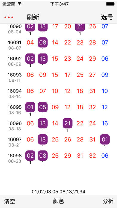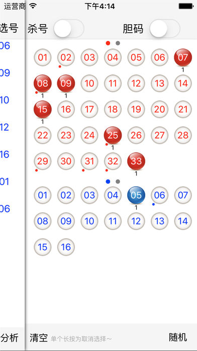 这次改版用户可以把自己生日等数据加到分析设置中,分析设置功能更方便使用啦~ -----分割线----- 本app是专为技彩民朋友开发的一款双色球购彩工具。 提供了图表查看功能。 多样式的选号功能,多种颜色直接触摸标注。 自动分析筛选相关指标号码。 第一时间获取到最新的开奖信息。 绝对物超所值。 希望大家喜欢。