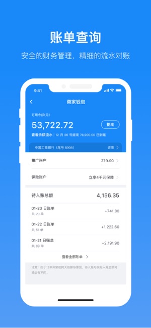 轻松接单,生意无忧。 饿了么推出饿了么餐厅管理系统,用手机快捷处理订单,管理餐厅。 快把您的餐厅搬到饿了么平台,接收海量外卖订单吧! 【功能亮点】 -简易高效的订单处理体验 -方便可靠的订单通知系统 -实时查看餐厅信息 【联系方式】 亲,如果你在使用中有任何问题,可以随时联系我们。 渠道:客户端中「更多」>「给我们建议」,直接提交反馈。 【温馨提示】 饿了么商家版会持续使用GPS定位服务, 切换至后台后仍会继续, 相比其它操作会消耗更多的电量, 并影响电池续航时间。