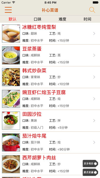 养生食谱大全—10000个养生食谱的做法补肾补心养肝养肺气血双补及调理失眠便秘食谱大全 本app有以下特点: 制作步骤有序,每个步骤都以最精简的文字说明关键制作方法 图片清晰,生个制作小步都配有清晰的图片,让您一看就会! 食材资料,每种食材资料的详细数据为您呈上,营养价值,选购窍门,保存方法应有尽有! 菜谱搜索 只要输入相关的关键字,就可以快速找到您需要的相关食谱 离线收藏,只要加入收藏夹,离线也能查看!