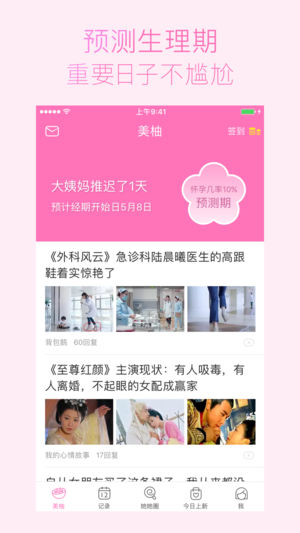 -2016独得女性恩宠的姨妈神器,超活跃的女性交流社区,超过1亿妹纸在这里! -美柚Pro是一款记录经期的APP,更是女性健康生活的正确入口,为女生提供购物、减肥、瘦身、美容、丰胸、星座交流,还可随心切换备孕、怀孕、育儿、孕期模式! 是什么给懵懂妹纸带来福音,每月轻松记录大姨妈,每日安心当个懒女人? 是什么让青春少女放弃治疗,起早贪黑发帖逛圈子,双目熬成熊猫眼? 当当当!爪机党的天下,女人没装【美柚】你就out了! ●俘获女人心的五大功能● #精准预测,帮你hold住大姨妈# 配备对抗大姨妈的贴身管家,记录、提醒、预测,让你避免经期的每一次尴尬;心情、爱爱、习惯,体贴经期的每一个细节。…