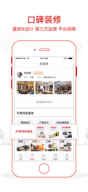 ------6000万装修用户的共同选择------ 齐家APP为用户提供:金牌装修公司免费出方案免费报价、整体家装套餐、口碑建材家居店铺、成本价线下团购、线上建材家居商城等装修服务。 ------特色功能 服务亮点------ 【免费设计】装修顾问24小时响应预约,免费上门量房,只为您安排顶尖装修设计师!免费获取三套装修设计方案,预见家的样子! 【精准智能报价】多维度科学算法,96项明细装修报价清单,仅10秒即可免费获得! 2017装修要花多少钱,提前算一算不怕坑! 【口碑装修公司】年度用户推荐口碑装修公司,新房、二手房、局装、工装全面覆盖!免费设计,标准化施工,工地直播,第三方监理,省钱省…