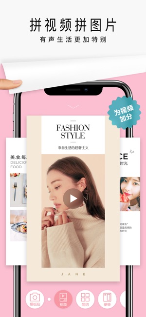 简拼,聆听照片里你内心的声音。 * 重磅推荐功能 *——【拼视频】 打破拼图静态边界,多格特效混剪,自由配文伴奏,全面调动感官体验。------------------------------------------ 【海量精致模板】 简约模板:主打文艺留白,提升个人风格。 便签模板:让文字和照片融为一体,使照片更加与众不同。 无缝模板:无缝拼接照片,经典呈现照片本味。 锁屏模板:打造专属于你的手机壁纸。 封面模板:宣告你酷炫的头条生活。 拼接模板:让你在编辑长微博和游记的过程中更加得心应手。 名片模板:界说新名片,二维码名片降生。 明信片模板:让远行的心极具诗意。 长图模板:无限量图文混排,…
