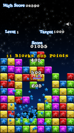现在增强iPad / Retina / iPhone 5显示! 摘下一颗星,星星摘不停! 完美游戏! "这是我现在最喜欢的游戏! 策略性、上瘾性、挑战性,趣味十足,让众生为之倾心!重玩价值颇高嘛!我在不停提高哦! 这款游戏当之无愧应排在大家的最爱游戏列表中! 很棒的游戏!" 爱不释手 "我爱死这款有着精美视网膜图像的游戏啦!酷毙了!" ---=== 游戏方法 ===--- - 只需点击同色的2个或2个以上的星形块。 - 无时间限制,但每阶段设有进入下一阶段的目标得分。 得分小贴士: - 只需牢记以下两条规则: 1. 你摘下的星形块越多,得分越高 2. 努力清除所有星形…