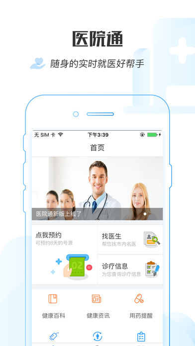 “医院通”是以移动互联网、云计算、物联网、大数据等特点“智慧化”信息革命。“医院通”旨在医院现有服务基础上,通过预约挂号、化验取单、科室医生、智能分诊、医院导航、健康档案、健康百科等多种简化患者就医流程功能,减少就医等候时间,改善患者就医体验,提高医疗服务质量。 -----主要功能----- 1、预约挂号:掌上预约挂号,短信凭证高效就诊; 2、健康百科:随时更新最新健康小知识,家庭健康小护卫; 3、智能导诊:哪里不适点哪里,模拟医生问诊,推荐相关科室,帮您针对性挂号 4、用药提醒:每天按时提醒用药,再也不用担心错过最佳用药时机; 此外还有检验检查、健康咨询、健康百科等实用功能,为您的健康保驾护航,第一时间提供专业便捷的移动医疗信息服务。
