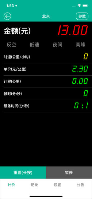 用于模拟出租车、网约车、代驾的计价器,支持返空费、早晚高峰时段附加费、夜间附加费、低速候时费、时间服务费等。