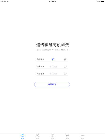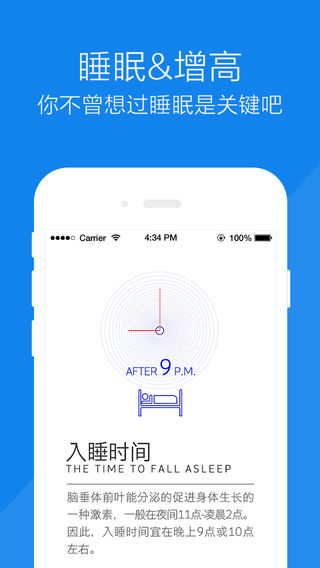 后天增高法-旨在用专业和科学的方法让你挣脱遗传的束缚,实现后天的二次增高 主要功能亮点 -身高预测 根据遗传学预测法预测每个人成人时的身高 -饮食 提供科学的饮食参考食谱 -运动 特殊的运动方法刺激骨骼生长 -睡眠 你要知道长高的关键在于睡觉! 告诉你生长激素几点分泌,入睡前吃什么能帮助增高。