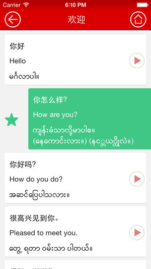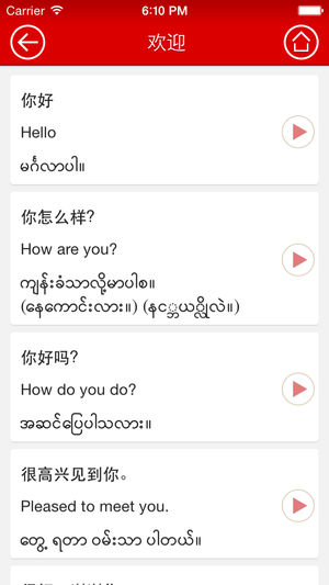 找应用?来缅甸 在你来缅甸之前,获取常用语手册的旅游帮助 我们的应用程序将帮助您与缅甸人沟通. “Talk it Easy”缅甸翻译常用语手册是一个移动应用程序,准确把 中文的词汇和短语翻译成缅文. 你可以尝试一下让你保证满意 记录由当地缅甸翻译者清晰发音 无需连接互联网 这种缅语手册将为你提供正确的发音 这个程序将给你一个学习缅文的良好开始 一旦你下载这个应用程序到您的iPhone , iPod Touch 或者 iPad 上 ,常用词,地名,城市名,情境的缅文翻译尽在您的指尖 这个应用程序比其他类似更多功能. 有了这个应用程序,下次你来缅甸就不用担心旅行的计划了.…