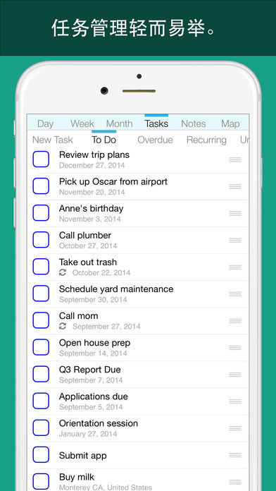 规划大师是纸张日程规划的最完美的替代,最适合寻求有条理,简化日程,及跟进工作的人士。现在,您可以在独立而美丽的背景下,规划所有的事项,任务/待办事项,和记录。 规划大师可自动同步您iSO中的所有事项和提醒,因此没有必要花费时间导入任何记录。只要打开应用软件,在同一个地方查看所有记录安排,然后在应用程序中开始添加新事项,任务及记录。 您所有的重要日历可以显示为天,周或月视图。用高级视图查看任务和记录。您也可以用地理标记事项,任务和记录,并在即时地图中查看! 美丽的日历 ∙在您自定设计的日历中查看每天,每周和每月的所有事项。 ∙与您的iOS日历自动同步。在应用程序中显示其他做出更改的地方。 ∙在日历中事项根据分配,用不同的颜色编码。 ∙使用直觉式滑动手势,在周与月之间导航。 ∙支持全天事项,周期性事项和提醒。 ∙设置一个事项位置,并可在地图上做标记。 事项管理变得更容易 ∙每天创建及管理事项。 ∙事项可融入日,周,月日历。 ∙支持周期性事项,首要事物和时间/地域位置提醒。 ∙在任务视图中查看所有的任务概述。 ∙任务地理标记,并将其添加到地图中。 每天日志/注意事项 ∙添加每天日志。 ∙添加图片,设置地域位置,包括所有你需要的文本。 ∙注意事项可以在日,周和月日历中查看。 ∙附注标签将所有记录呈现在美丽,杂志模式滚动的视图中。 ∙可在地图中查看注释与指定地点。 地图集成 ∙任何事项,任务或记录都可以标记在一个位置中。 ∙在地图选项卡中查看所有位置及日历项目。 ∙查看您的当前位置,及与日历中待办事项间的路程距离。 及更多 ∙iCloud融合,让您的数据在设备之间安全同步。 ∙应用程序通用。一次性购买,可用于iPhone和iPad。 ∙通过电子邮件导出您的数据。该应用程序可创建简短的总结,供您分享或打印。 ∙快速及友好的用户支持。