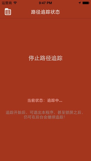 远足位置追踪器是一个强大的GPS位置定位追踪器。它利用手机的A-GPS进行基站辅助定位, 辅以海拔算法和加速计, 可以在地图上快速精确的锁定和计算。用户可以在地图上很容易地查看历史位置和路径。特别提供克洛瑞消耗计算精确算法, 专为远足救援、路径重现等保驾护航。 非常适合那些谁想要: +记录旅行踪迹 +记录自己每天的轨迹 +监控远足救援 +道路回溯 奇妙的体验与屡获殊荣的重量跟踪: +自动计算与内置的海拔高度算法, 加速度计和GPS消费。 +支持实时后台跟踪和锁定屏幕跟踪。你感觉不到它的存在。你可以接听电话, 玩游戏, 听音乐, 一切如常。 +密码保护完全保护您的隐私, 没有人能知道你的踪迹。 +使用创新的节能技术, 并获得位置信息, 只有当需要时, 这显著降低功耗。 +继续在没有网络连接的记录。 +保存追溯历史以备以后查看。 注意: +在后台连续使用全球定位系统运行, 会大大减少电池寿命。
