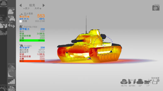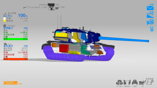 你玩坦克世界吗? 提高你的胜率需要坦克世界伴侣APP! 了解坦克世界中任何坦克的装甲保护,弹药穿透和模组位置。 选择一个射击坦克和目标坦克并学习游戏中得进阶技巧! Armor Inspector能够给你展示游戏中任意坦克的弱点。学习如何击穿敌人以及保护自己。 - 300+ 可用坦克 - 各个角度展示3D模组 - 实时穿深 - 选择任意一种弹药和火炮 - HE防护预览 - 3D展示坦克装甲的细节 - 3D展示坦克内部模块与成员的位置 - 无广告 目前只有英语中文和俄语,其他语言会相继添加 * Armor Inspector是一款坦克世界和坦克世界闪电战的辅助软件 * Armor Inspector 不属于 Wargaming(坦克世界等游戏的产商) * Armor Inspector是独立开发的软件并且符合WG条约 合法信息 坦克图像和游戏模型是从 Wargaming.Net LLP复制过来的。坦克数据有Wargaming.Net的知识产权 : Copyright © 1998 - 2015 Wargaming.net ®, All rights reserved. World of Tanks, WoT are trademarks or registered trademarks of Wargaming.net.