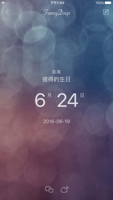 FancyDays 帮助你管理那些对你很重要的日子,计算距离那些日子还有多少天。 产品特色 - 正数过去了多少天,倒数还剩多少天 - 支持农历日期 - 在 App 图标上显示倒数 - 推送通知提醒您即将到期的事件 - 重复倒数(每年、每月、每周) - 密码功能,支持 Touch ID 解锁 - 备份功能,支持 iCloud 备份 - 多套精美的主题 - 支持 Apple Watch - 支持 3D Touch 小技巧 - 在主界面点击上面的logo可单独显示某一分类的事件 - 在事件详情界面点击日期区域可显示为年月日模式 我们的作品 - AirLaunch: 通知中心启动器 - DataFlow: 实时监控手机流量 - Fancydays: 倒数日期 - AnyRate: 汇率换算器