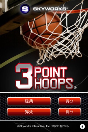 三月疯狂赛还玩不够! 那么就快来玩3 POINT HOOPS® Basketball吧,此游戏由出品iPhone/iPod touch上一些最佳品质和最好玩的运动及街机游戏的Skyworks公司开发! 在经典模式下,围绕3分线九个位置投篮。用手指向球篮方向投球 。投的速度和方向控制球的速度和方向。 在突然死亡模式下,若有一投未中,就会返回更衣室!在每个模式下,每个站位都有机会投一次“奖励球”,以获取更多分! 3 POINT HOOPS拥有两种可选的摇滚音乐及最新的iPhone图形界面。 主要特点: - 经典模式 – 围绕三分线九个位置投篮! - 突然死亡模式…