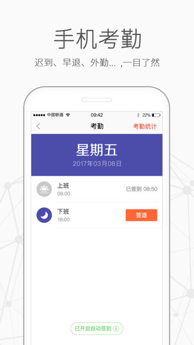 口袋助理致力于为企业打造高效的 移动OA + 智能CRM 平台,支持手机APP、网页版和电脑端。目前超过120万家企业正在使用。 - 移动OA:手机考勤、流程审批、工作汇报、移动报销、任务管理、企业云盘、企业通讯录、在线聊天等丰富的功能 - 智能CRM:销售外勤监管、客户管理、销售流程管理(商机、订单、合同、回款)、产品管理等,以及强大的数据分析功能,帮助企业更简单的掌控公司业绩和客户 【安全可靠】:采用了严密的安全架构设计,本地、网络数据全程加密,部署了网络/Web防火墙,数据实时备份,满足企业对数据的安全需要 【简单易用】:和普通的聊天APP一样简单,所有办公事务都在手机上完成,不用培训员工,直接导入企业通讯录,快速部署 【方便扩展】:提供开放的平台API,方便企业接入已有的办公系统 【永久免费】:我们承诺永久免费,不花钱就能提升企业的工作效率,快来试试吧 温馨提示:外勤轨迹功能开启位置上报后会在设定的时间段内持续使用GPS定位服务,切换至后台时部分情况下仍会保持GPS定位连接,相比其他操作会消耗更多的电量。