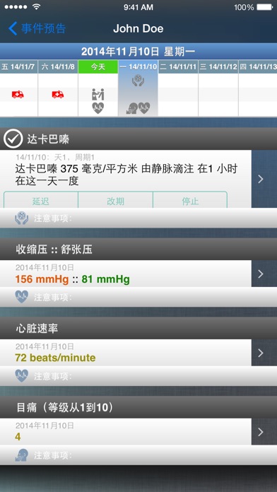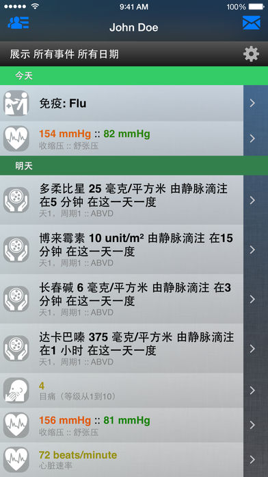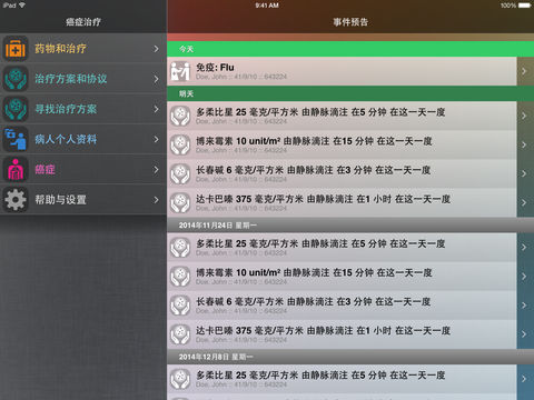 无论你是一个癌症患者或医疗专业人士, 癌症治疗日历为您提供了易于使用的功能: ¤ 跟踪一切,如下列情况: » 化疗方案 » 预约的时间 » 药物和治疗 » 症状和副作用 » 生命体征,如血压 » 化验结果 » 手术操作 » 住院 » 您所有活动的笔记 ¤ 从300多个化疗方案选择,可以自动填充你的时间表! ¤ 150多种药品,200多个化验结果,30多个症状和生命体征都包括在内! ¤ 创建自己的化疗方案、药物和治疗,并添加到您的时间表 ¤ 随时由列表了解即将到来的事件 ¤ 创建您的信息报告