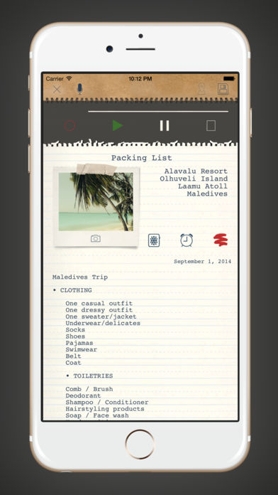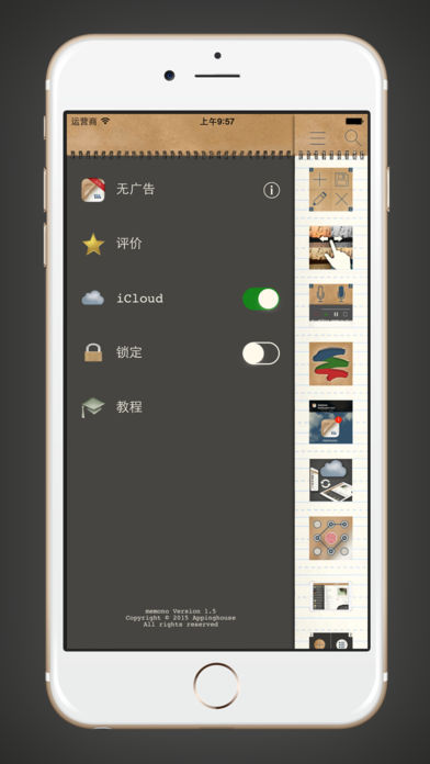 适用于iPhone,iPad,iPod Touch和Apple Watch的多媒体笔记应用程序。 正文 加入标题并编写笔记。电话号码,地址,网络链接和邮箱地址可以从memono内部使用。 照片 拍照或从图片库中选择一张照片加入你的笔记。全屏查看照片并放大。保存每个笔记的多个图像。 照片标签 从众多标签中选择合适标签加入你的照片。如需使用原片,照片标签可随时被删除。 语音录制 给每条笔记加一段语音信息。 地点 在你的笔记里加入地址,或者允许memono自动添加。 日期 日期将被自动添加并可以随时编辑。 颜色类别 给文档定义不同颜色也便更好的区分。 分享笔记 通过邮箱,短信, Twitter, Facebook, 新浪微博分享笔记或在照片库中保存定制的memono笔记。 提醒警报 设置每个笔记的提醒警报,并接收通知。 ICLOUD 使用iCloud在所有设备同步您的笔记和在iCloud中保存备份。 锁定 用触摸图型来锁定你的笔记,保证个人隐私。通过您的指纹使用Touch ID解锁memono。 查找 和 SPOTLIGHT 查找 笔记可通过标签来查找。 3D TOUCH Quick actions, peek & pop. APPLE WATCH 使用Apple Watch创建一个笔记。在Apple Watch上查看笔记。接收memono关于Apple Watch的通知。