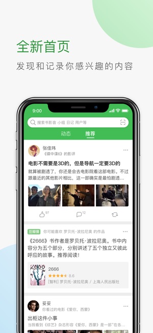 豆瓣,你的书影音世界。 这里不仅有丰富全面的书影音资料库,能让你快速找到你喜欢的电影、剧集、综艺、图书和音乐,参考豆友的评分、评论,查看多种具有豆瓣特色的片单、书单、歌单,助你探索庞大的书影音世界,发现更多“想读”“想看”“想听”;更是你的书影音专属贴身助手,推动你完成更多“读过”“看过”“听过”并有所收获,陪伴你记录文化足迹,建立和丰富你的个人精神生活档案。 全新首页,写文字、发图片、给书影音评分评论更方便,随时随地记录你的生活与想法。首页“动态”将第一时间提供你最关心的信息。关注豆友后,你可以在“动态”里收到他们分享的生活与想法;关注你感兴趣的主题内容源后,你会在“动态”里获得该主题…